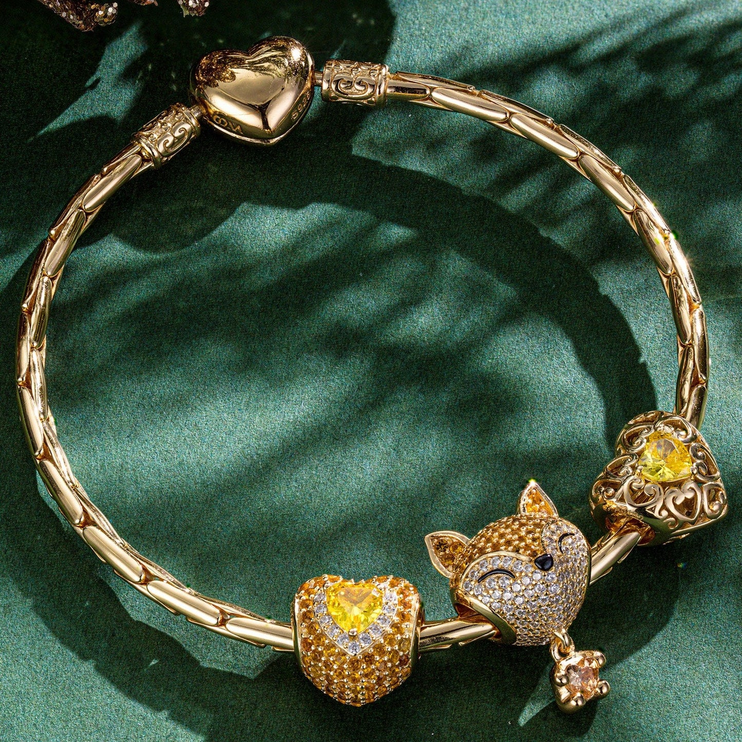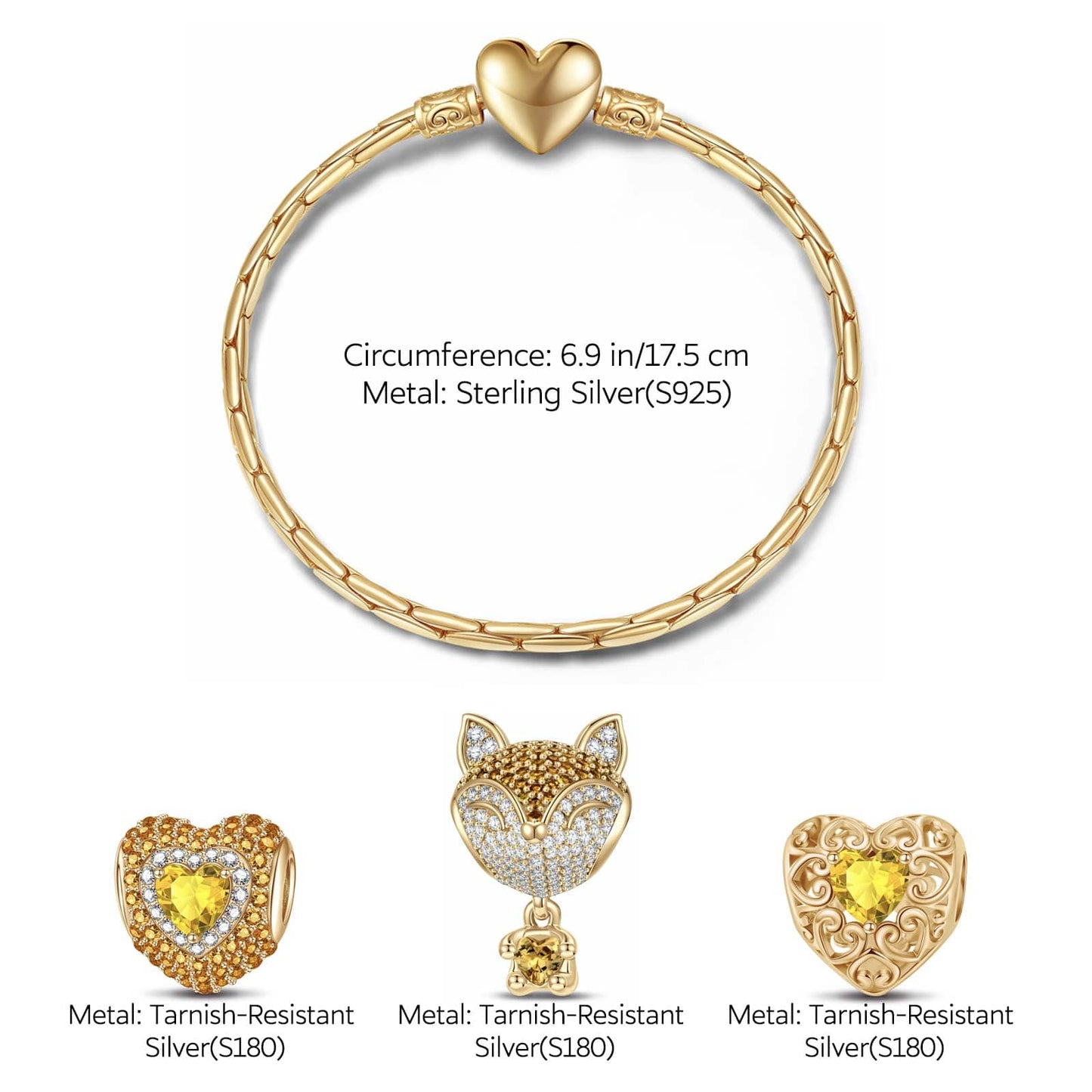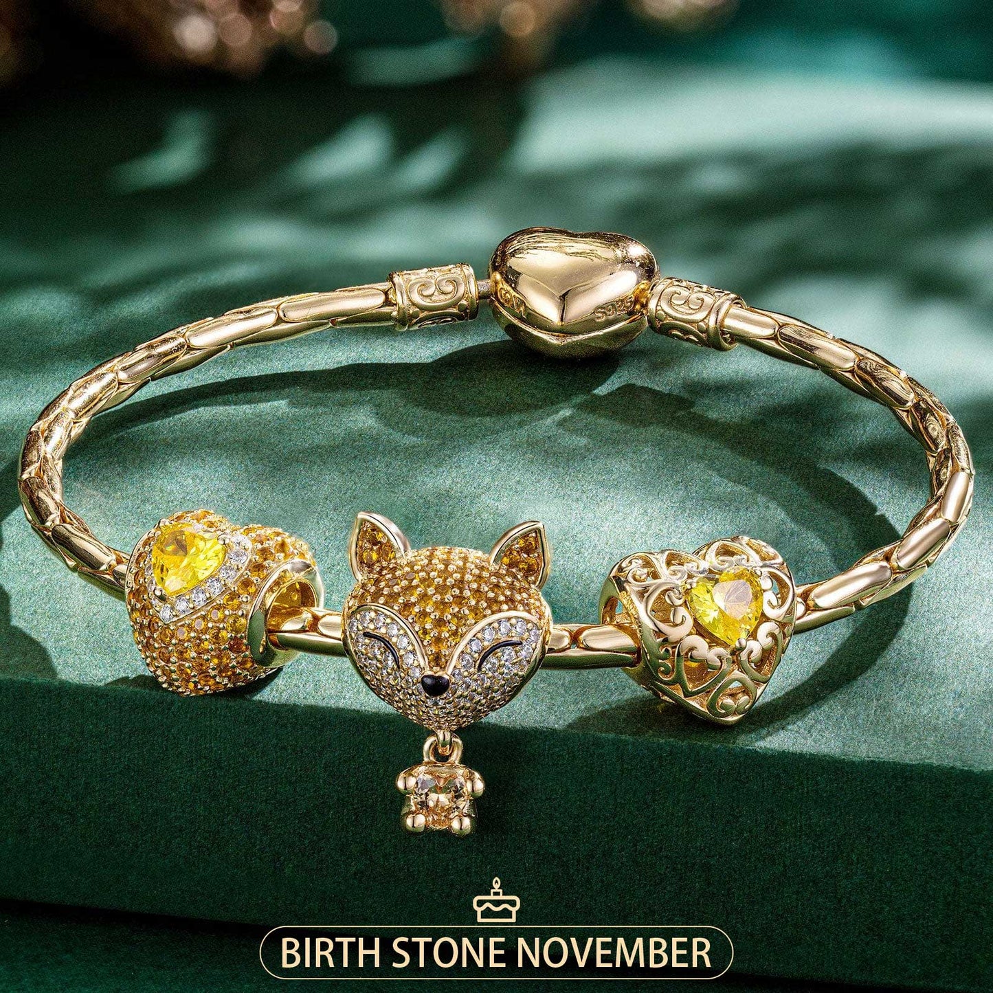 Sterling Silver November Birthstone Embrace the Love Animals Charms Bracelet Set In 14K Gold Plated - Heartful Hugs Collection