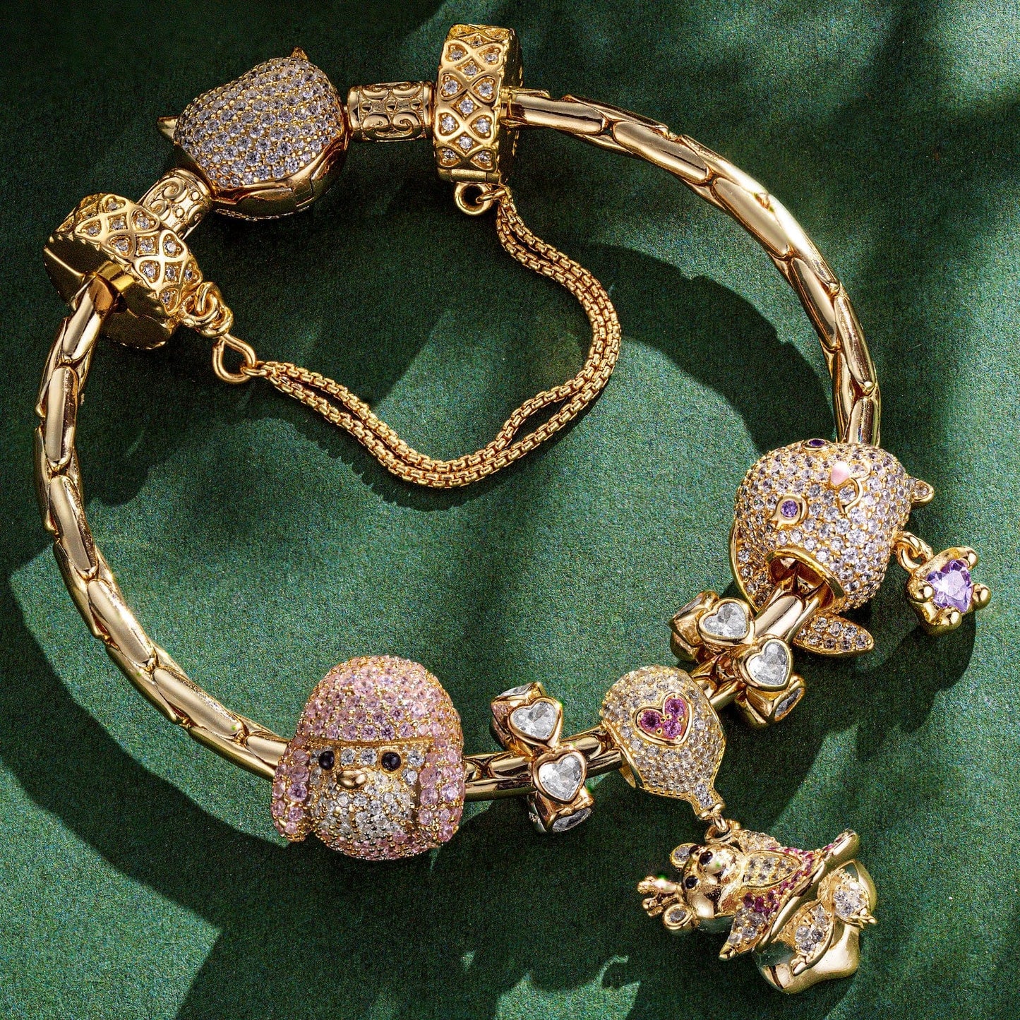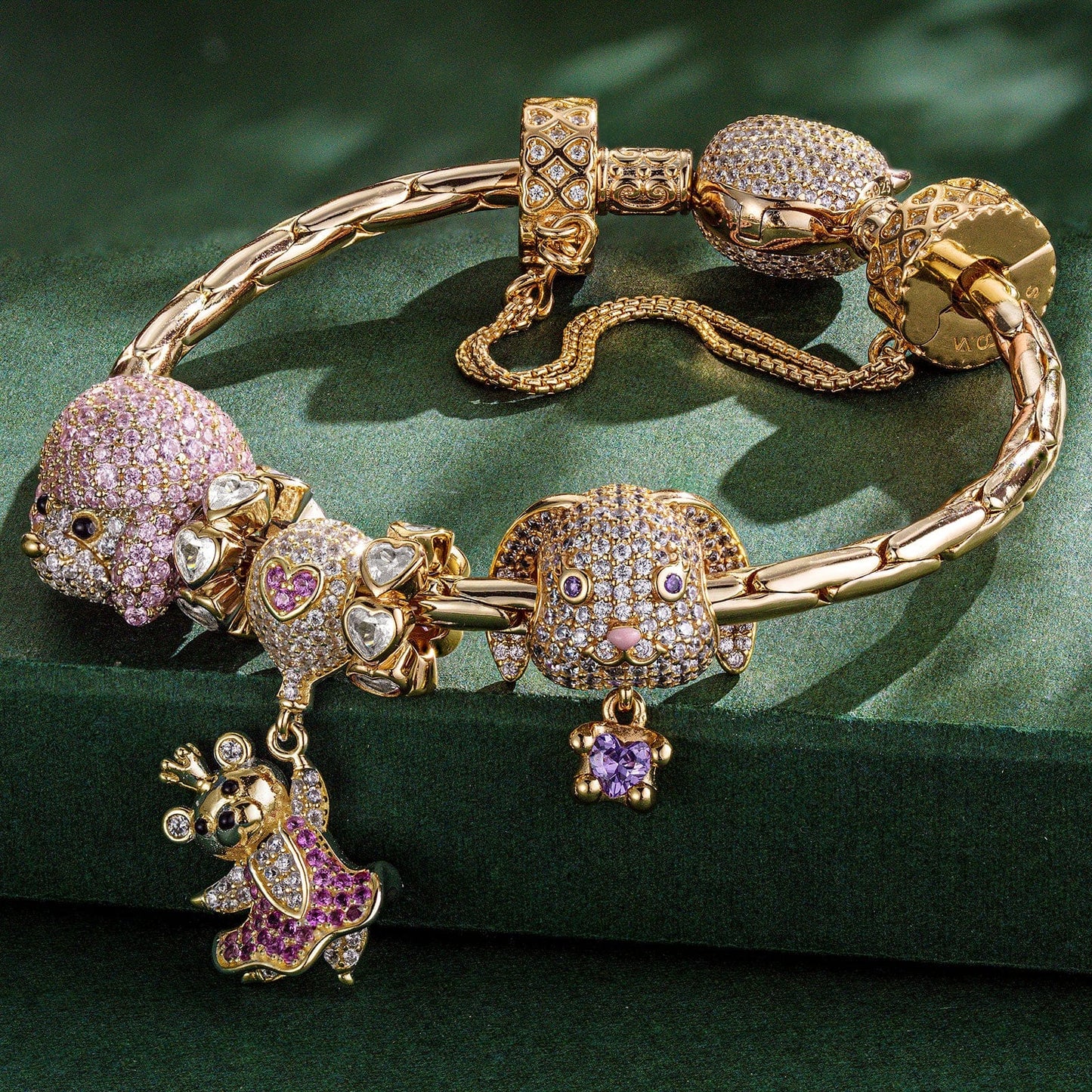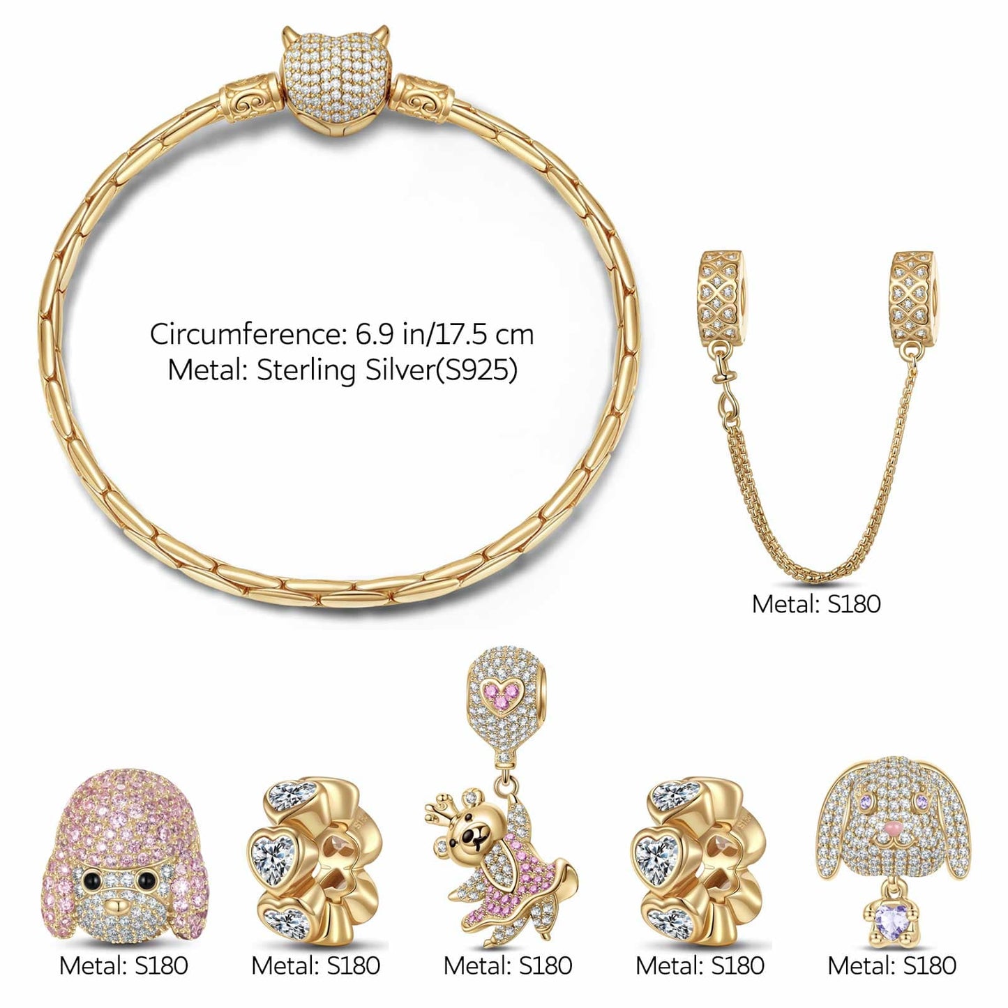Sterling Silver Blessings and Delight Animals Charms Bracelet Set In 14K Gold Plated