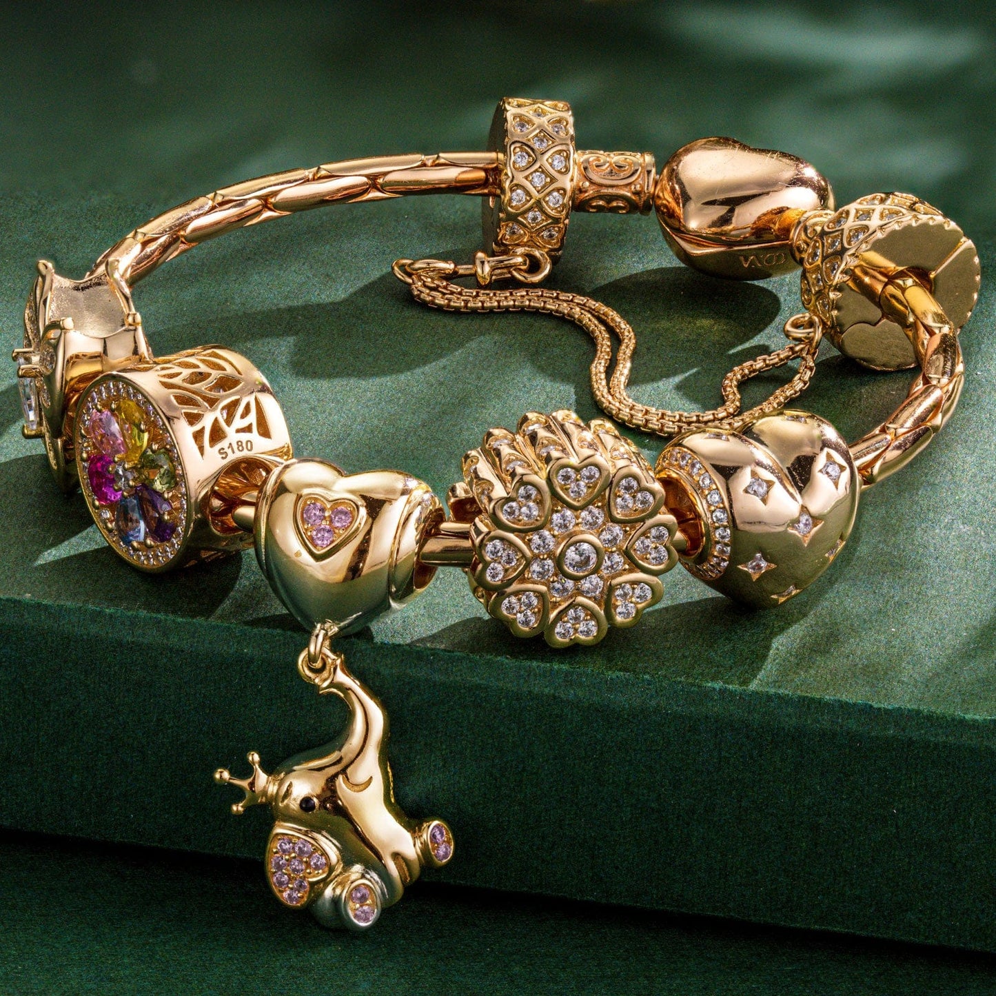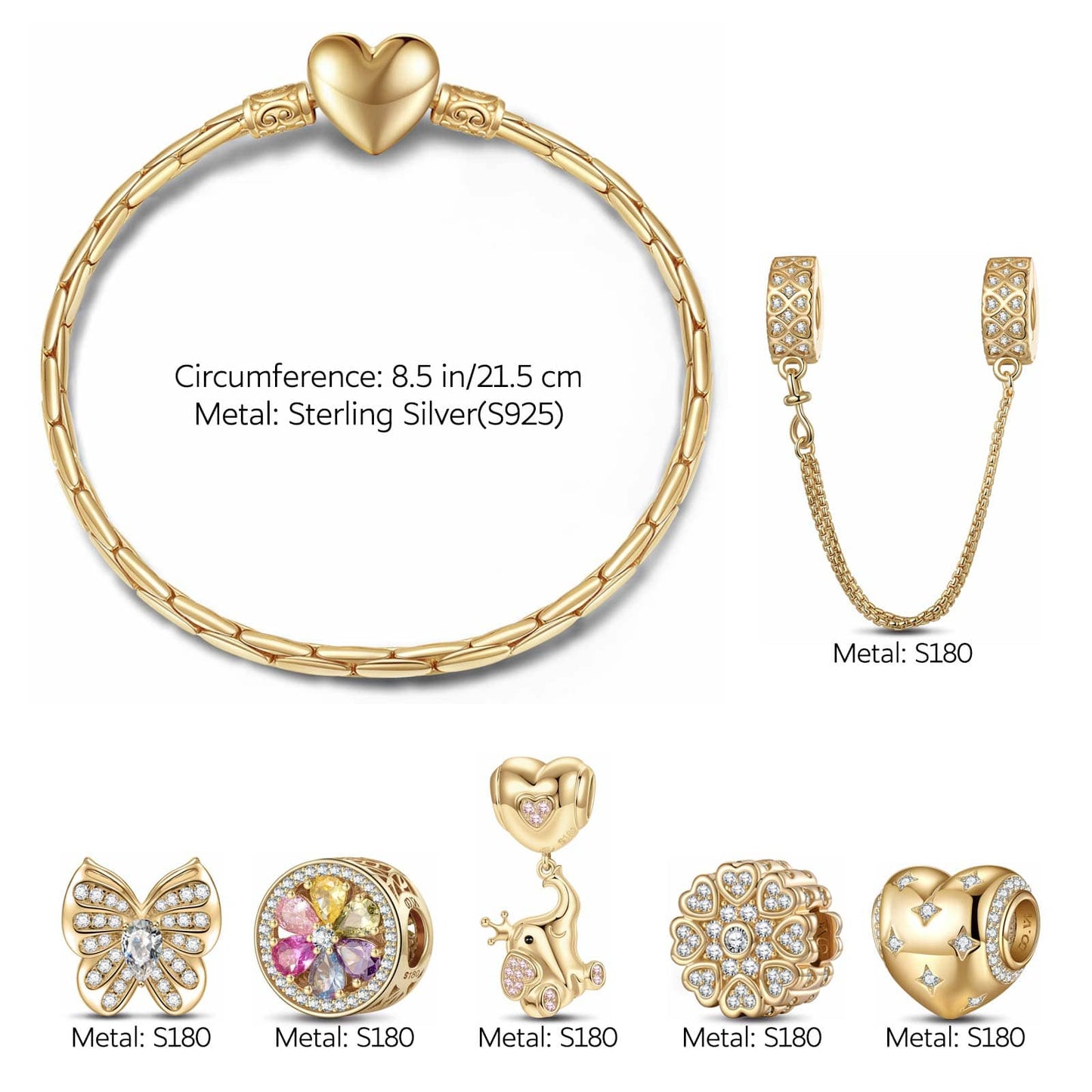 Sterling Silver Golden Butterfly and Elephant Animals Charms Bracelet Set In 14K Gold Plated