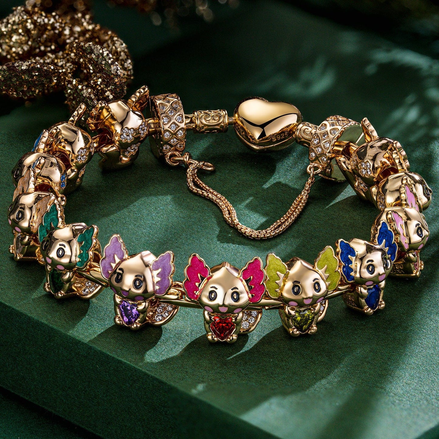 Sterling Silver 12 Month Birthstone Lovely Axolotl Animals Charms Bracelet Set With Enamel In 14K Gold Plated - Heartful Hugs Collection