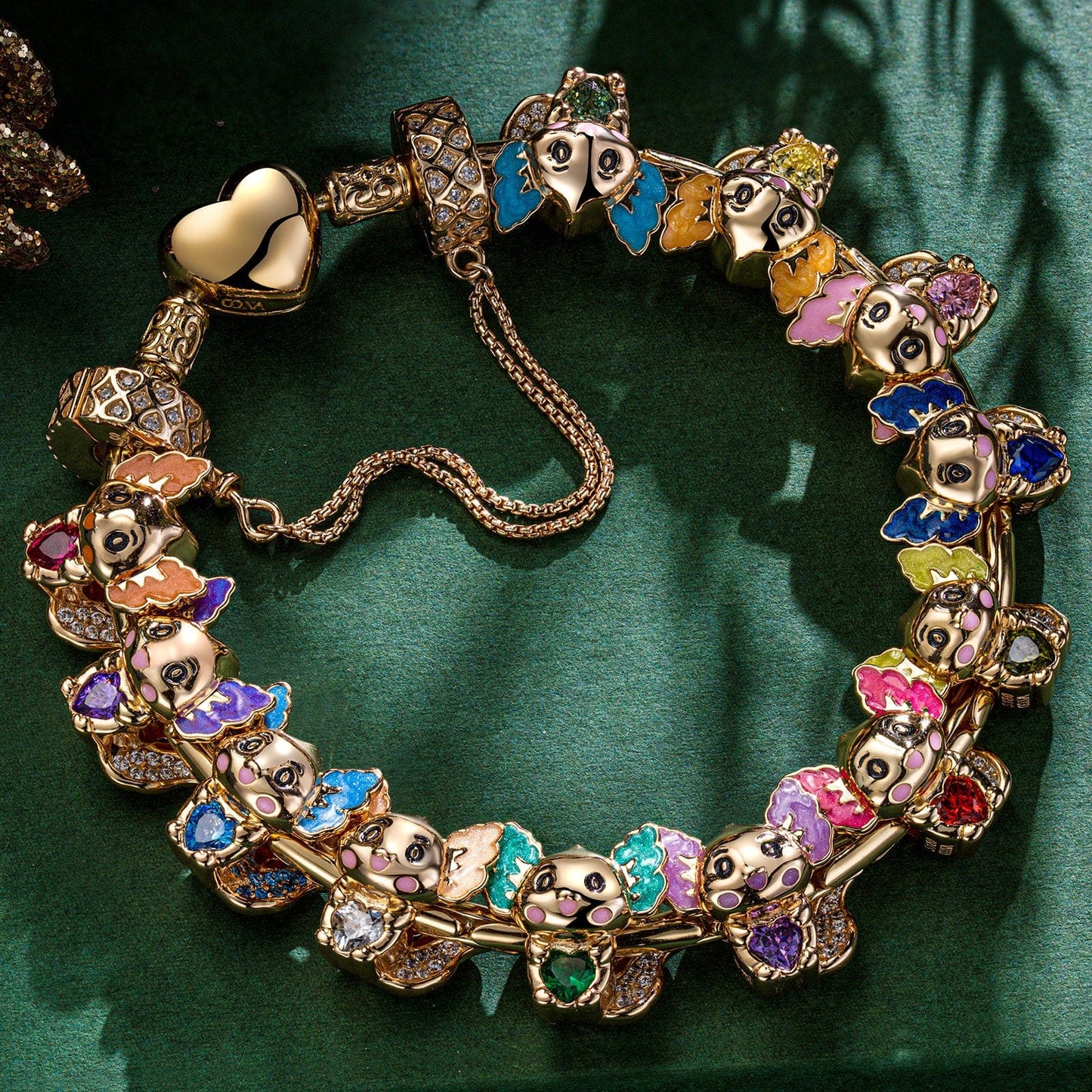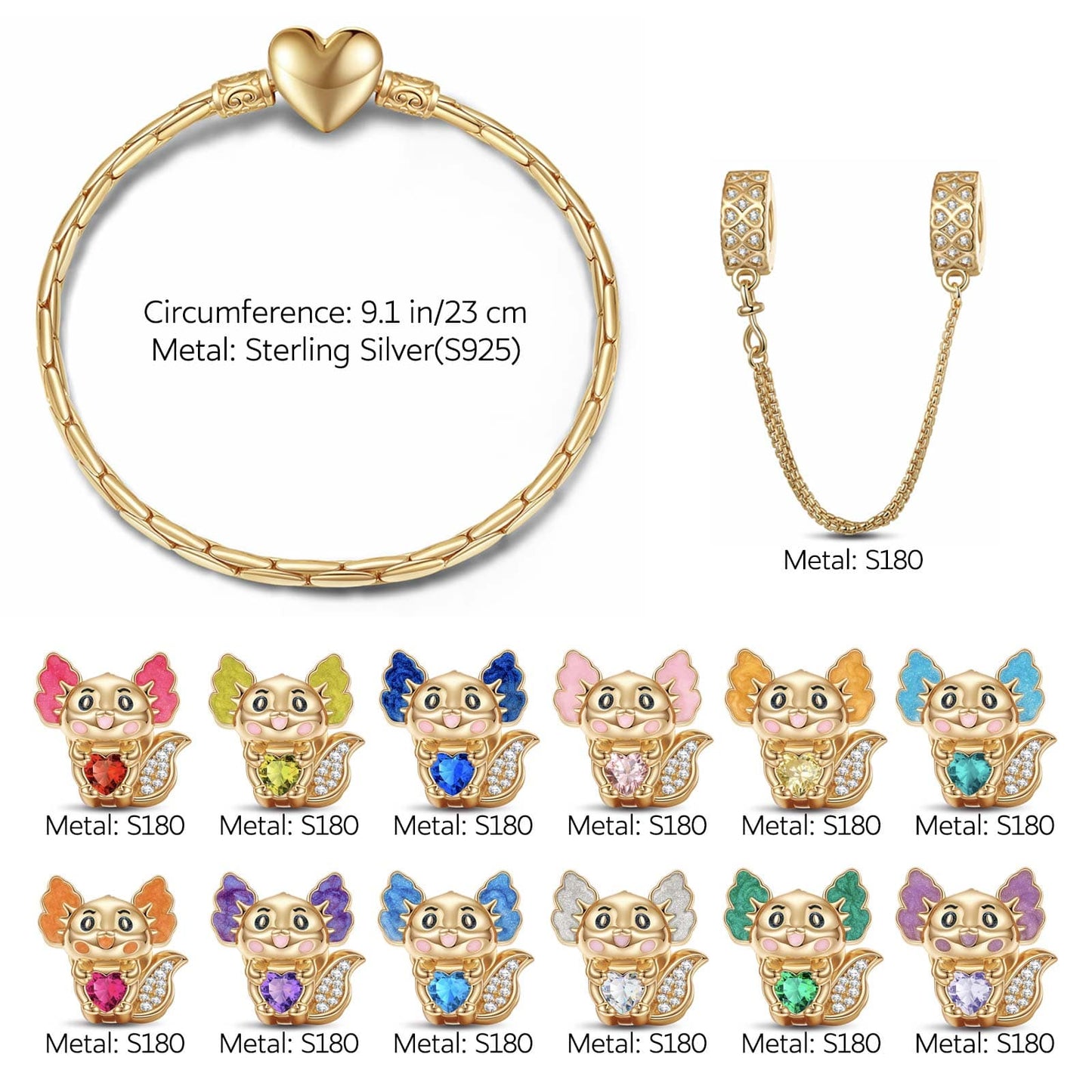 Sterling Silver 12 Month Birthstone Lovely Axolotl Animals Charms Bracelet Set With Enamel In 14K Gold Plated - Heartful Hugs Collection