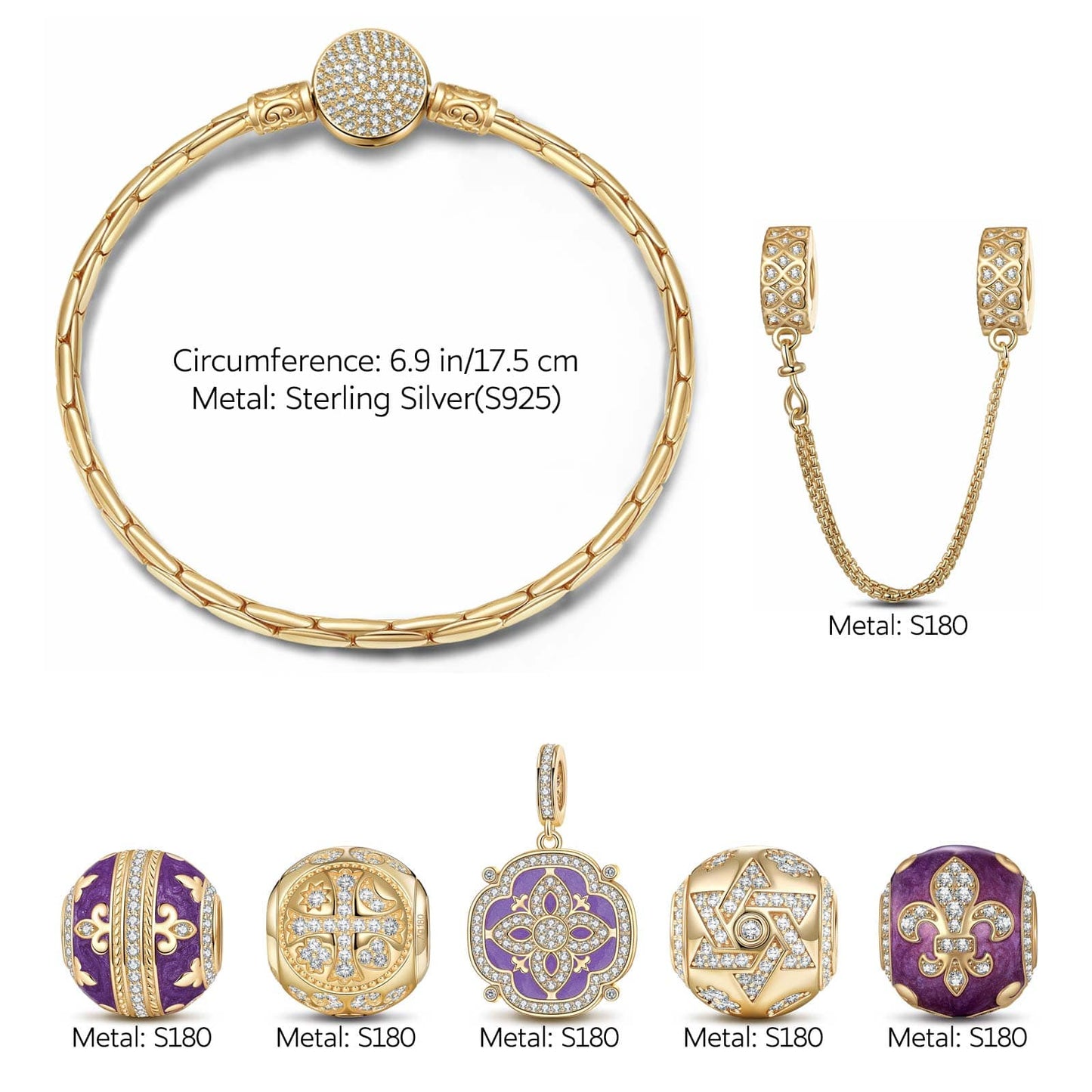Sterling Silver Lavish Amour Charms Bracelet Set With Enamel In 14K Gold Plated