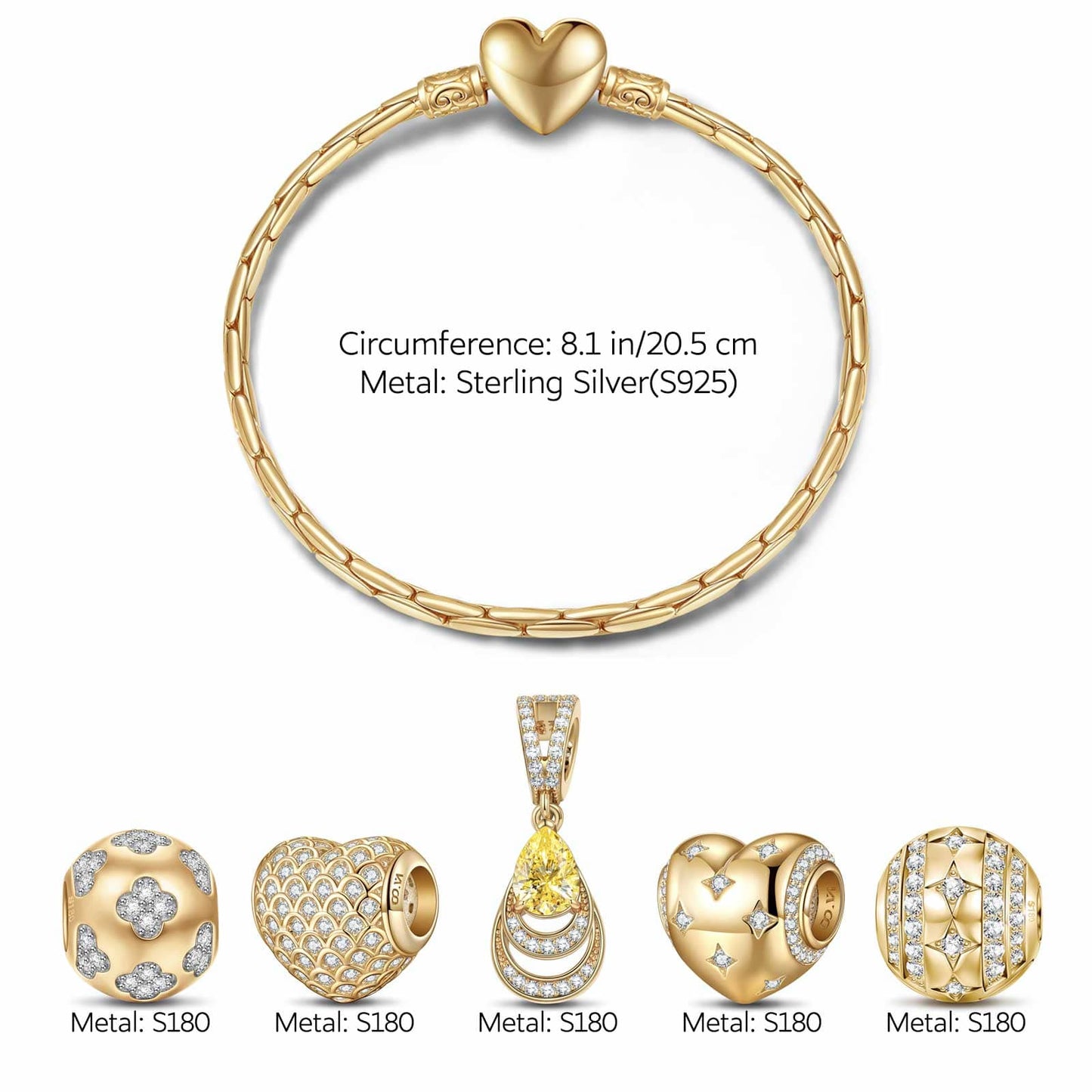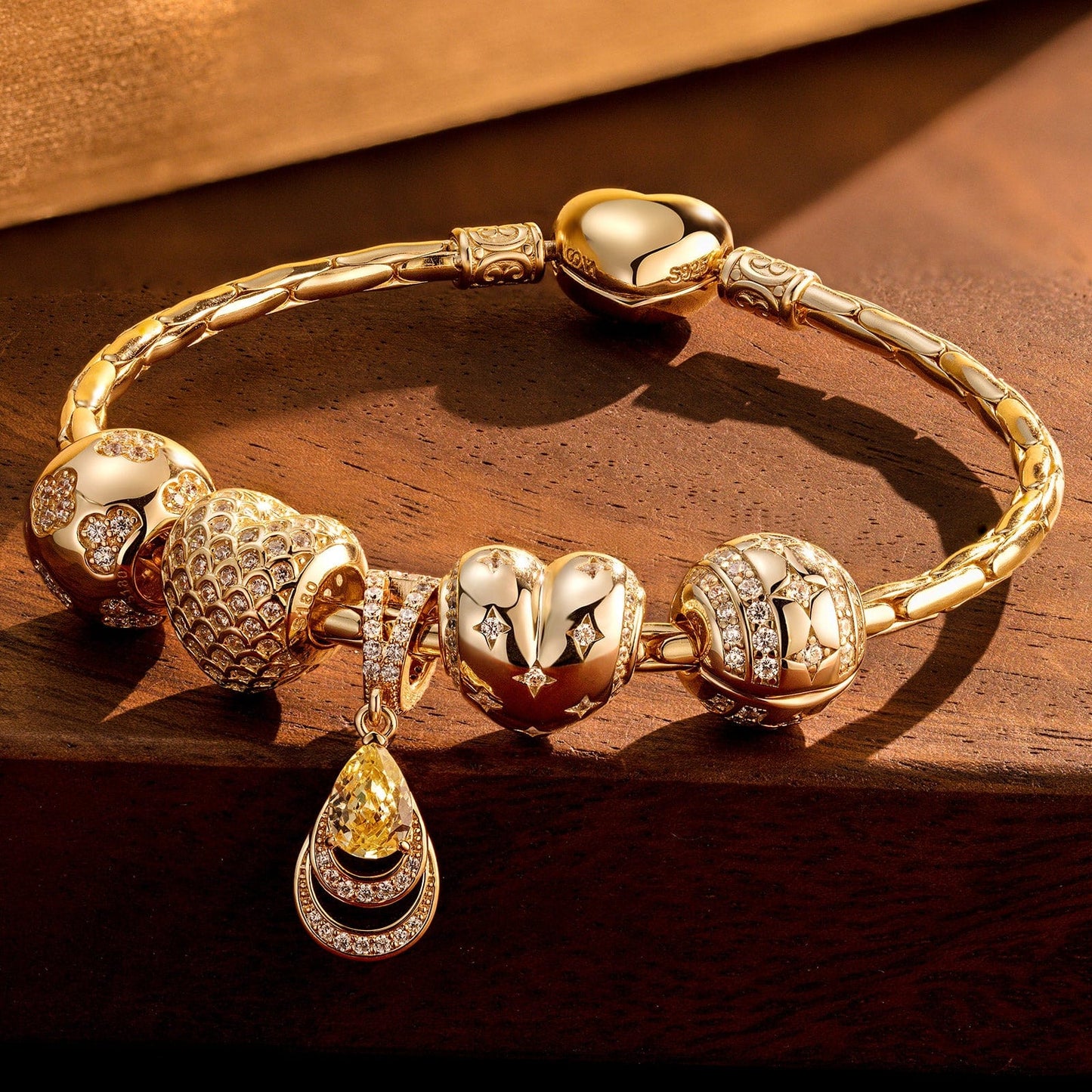 Sterling Silver Starlit Drops Charms Bracelet Set In 14K Gold Plated