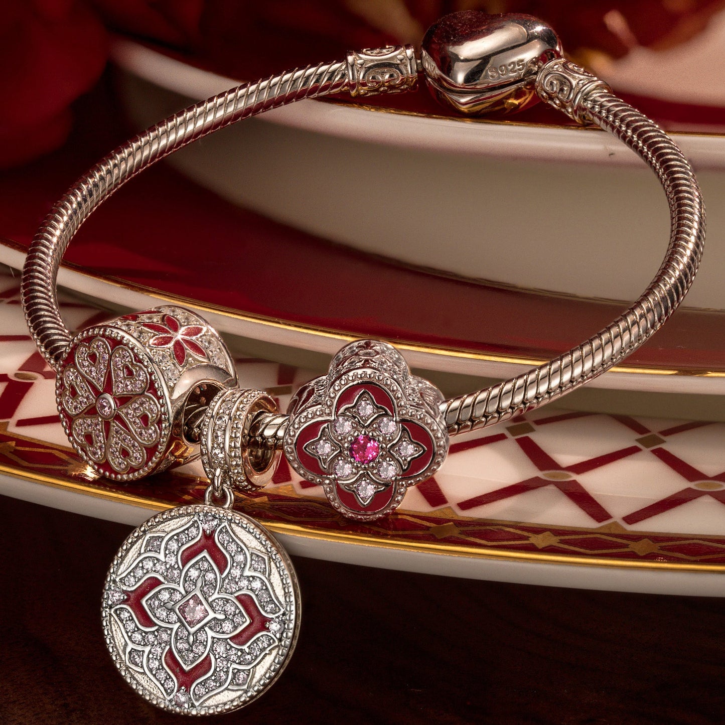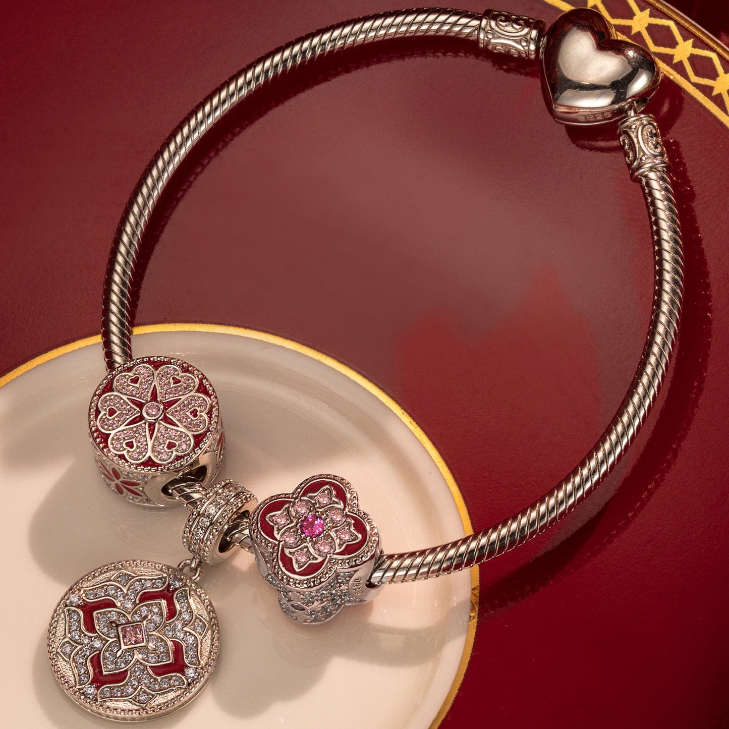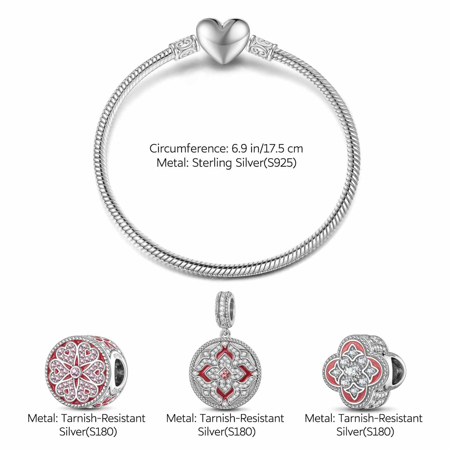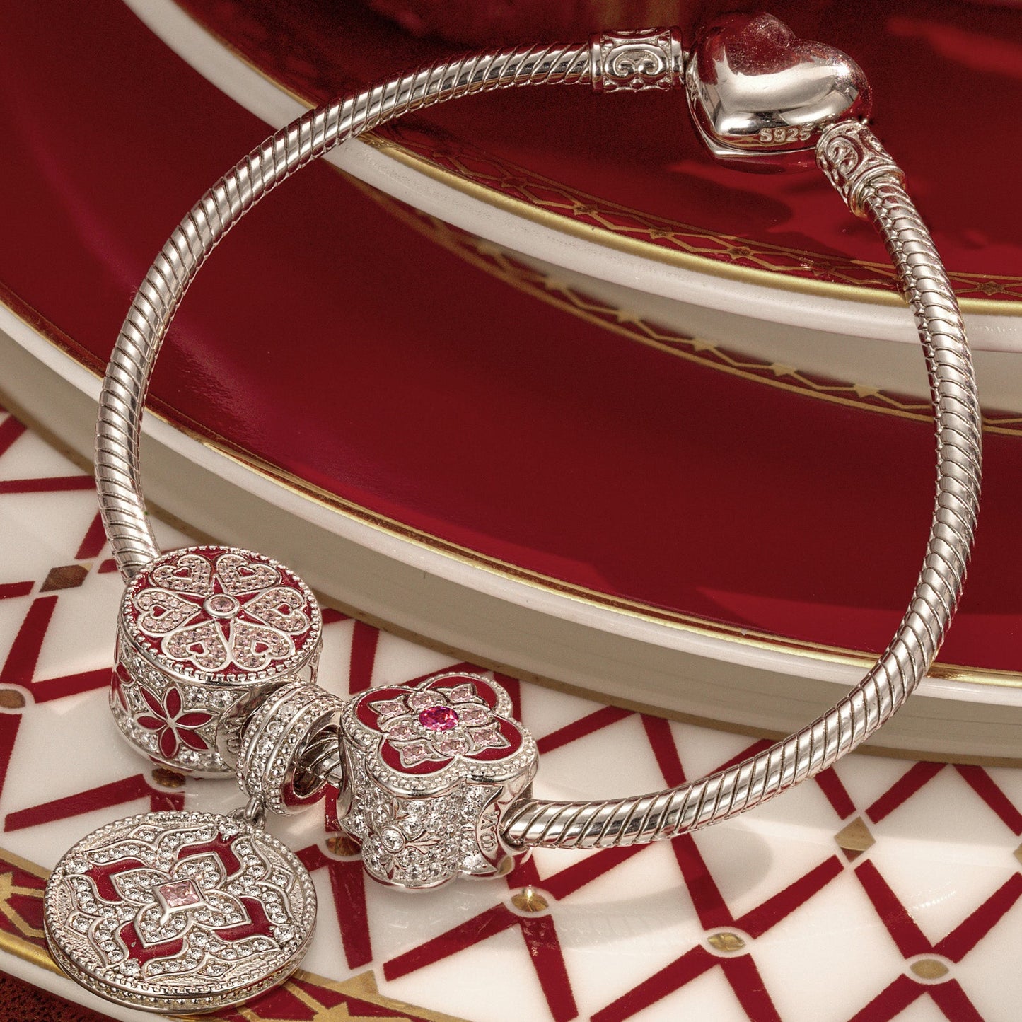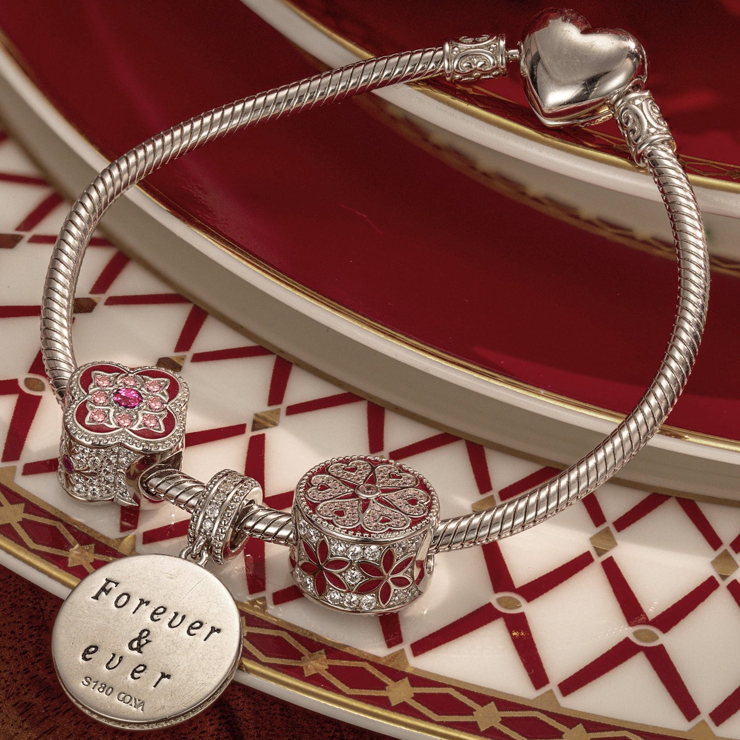 Sterling Silver Bright Blessings Charms Bracelet Set With Enamel In White Gold Plated