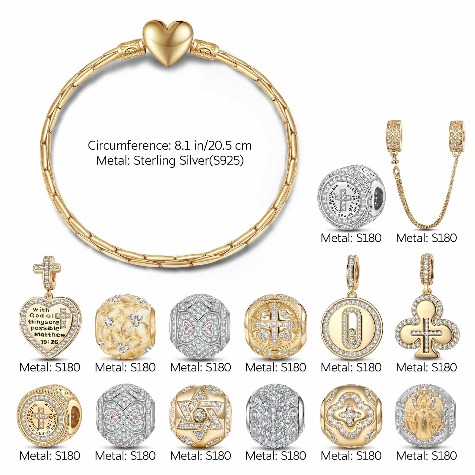 Sterling Silver Steadfast Protector Charms Bracelet Set, Featuring Dual Plating in 14K Gold and White Gold