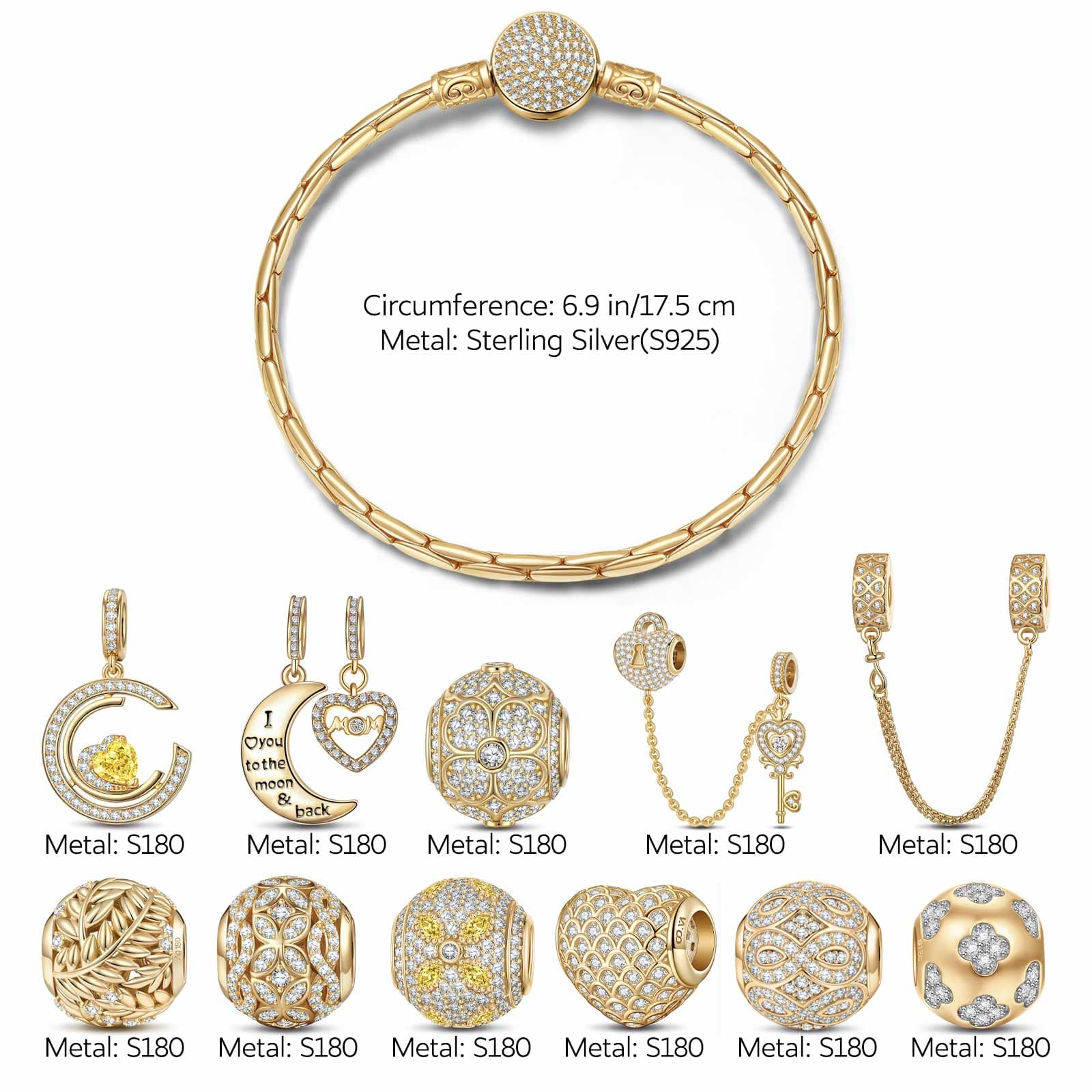 Sterling Silver Precious Connection Charms Bracelet Set In 14K Gold Plated