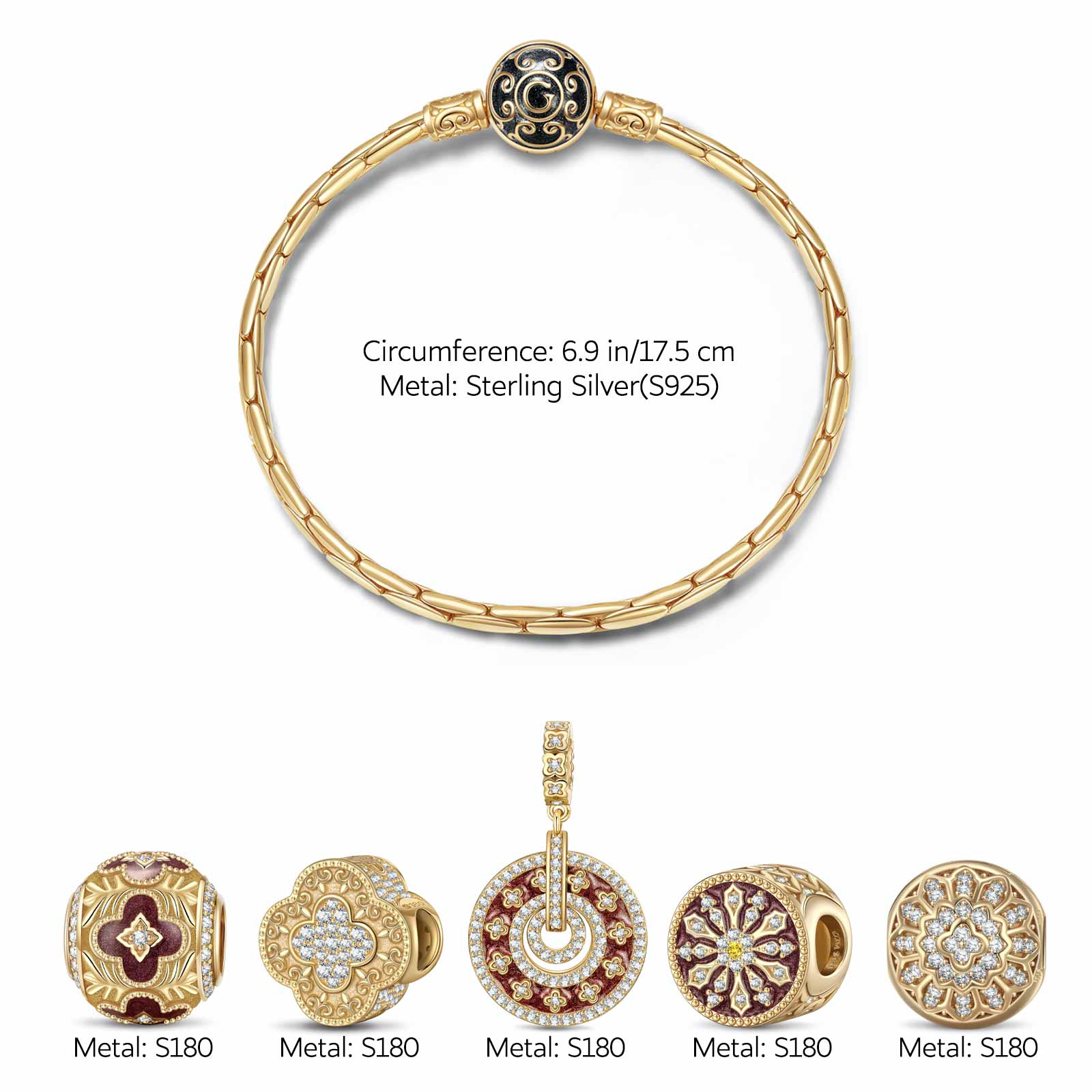 Sterling Silver Regal and Luxurious Charms Bracelet Set With Enamel In 14K Gold Plated