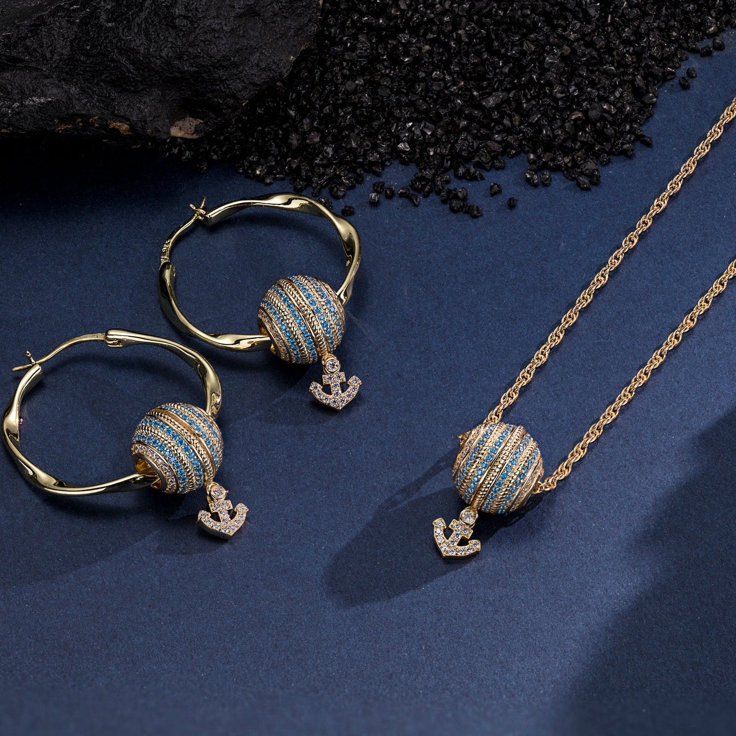 Sterling Silver Dancing Anchor Charms Necklace Set and Tarnish-resistant Silver Charms Earrings Set In 14K Gold Plated